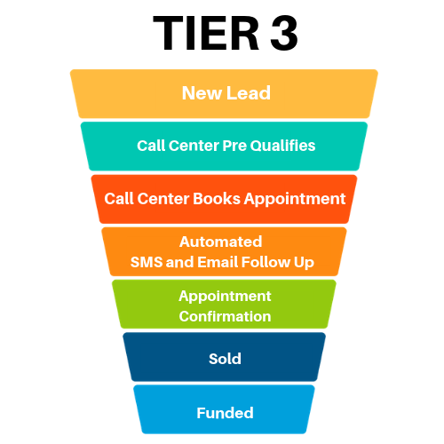 In Tier 3, our system is paired with our call center to create the most efficient roadmap for getting as much long term value as possible out of your lead flow.